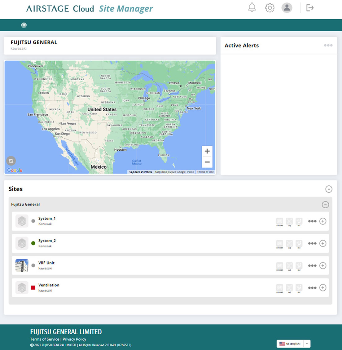 Location map and information about HVAC systems under management