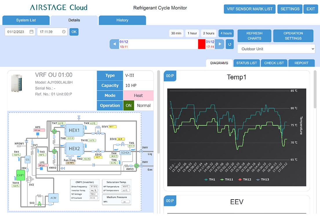 Monitors and visualizes operation status of refrigerant cycle and shares monitoring data on a real-time basis to facilitate a quick response in the event of an abnormal operation of the equipment.